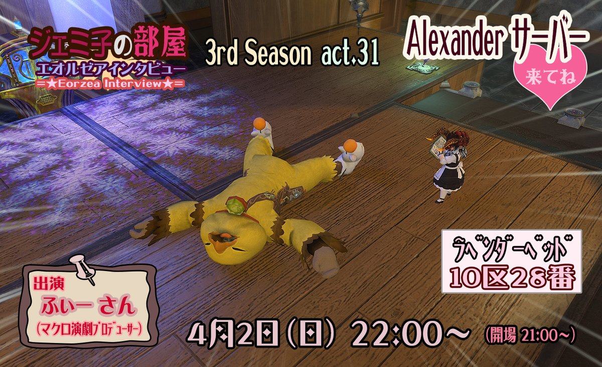 FF14のユーザーイベントを扱っております。 チョコボサーバーにて「星占いの館」を運営。